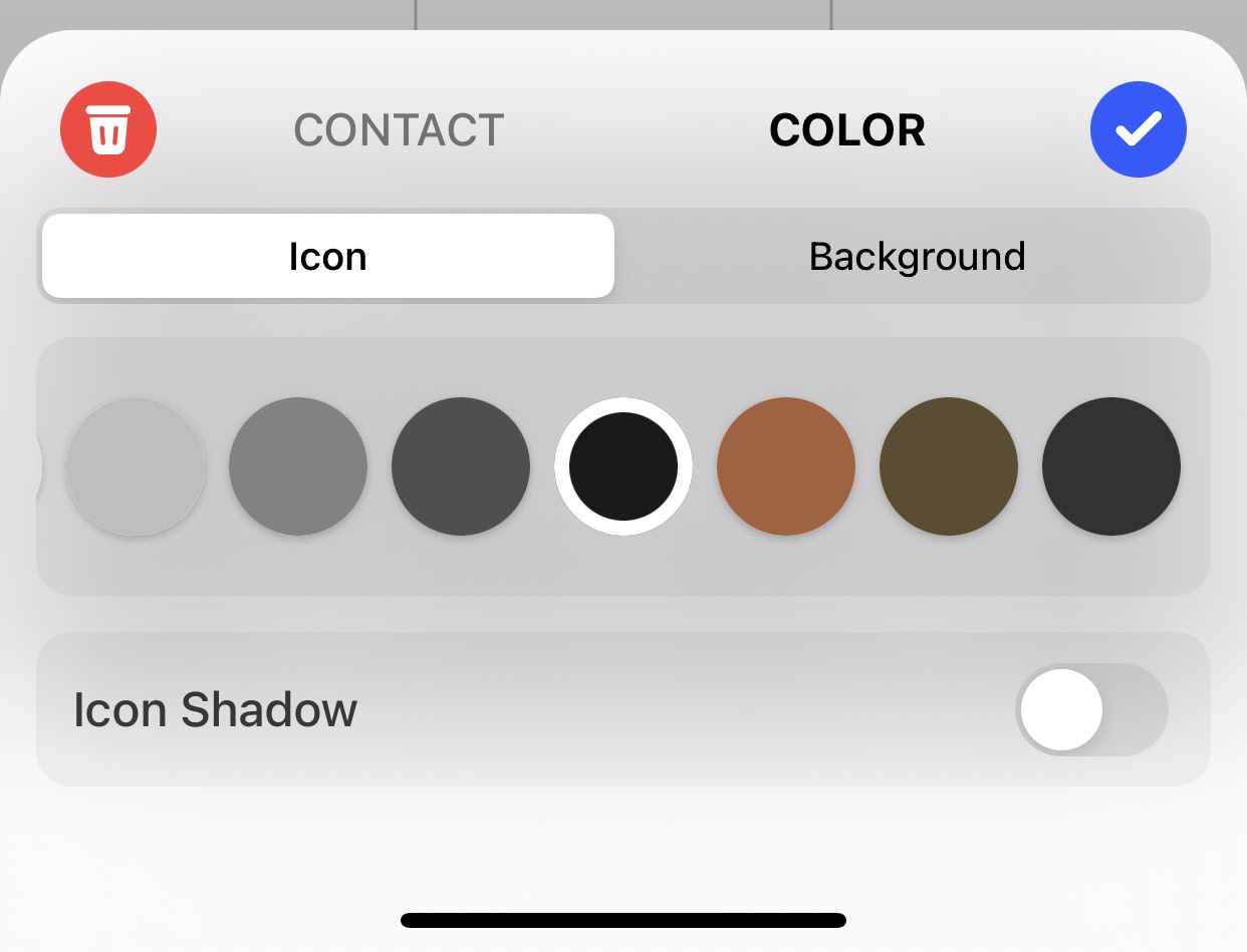 Edit the icon color as well as the background color by scrolling through our options in the Color section. You can also toggle on a shadow to appear below your contact icon.
