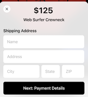 When a visitor to your site taps on the button to buy a product that has the toggle enabled, they will be asked to provide their shipping information.