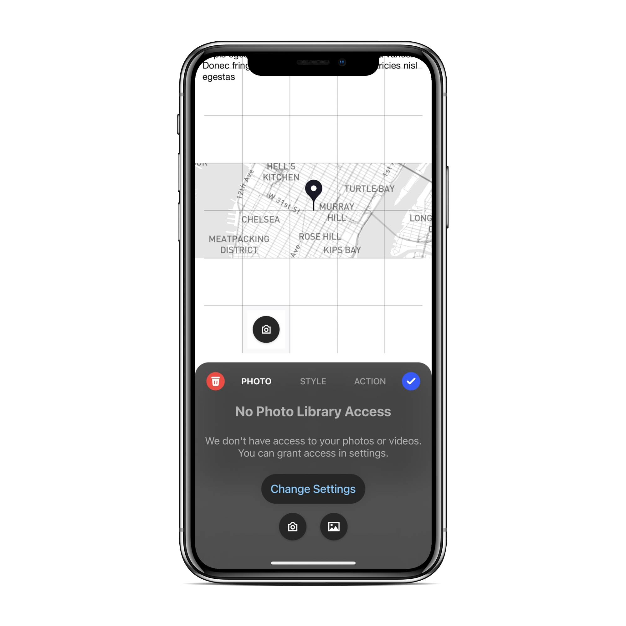 When you select the Image Block, you are first presented with a list of sources to choose from. When you select Photo, you will see a message asking for Photo Library Access. We need this to be able to use Photos from your device. You may be asked to grant access to all photos, or a select few photos.